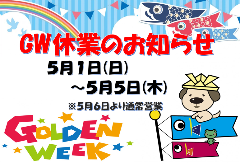 GW休業のお知らせです。