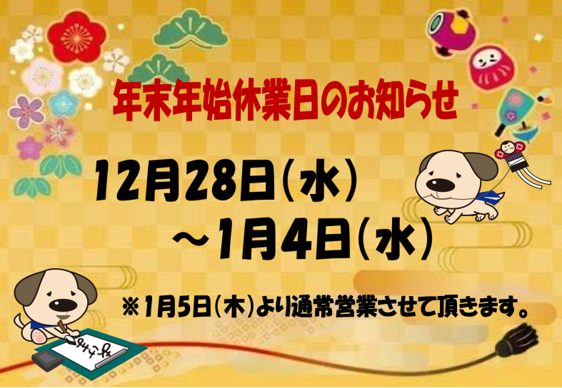 ~年末年始休業のお知らせ~